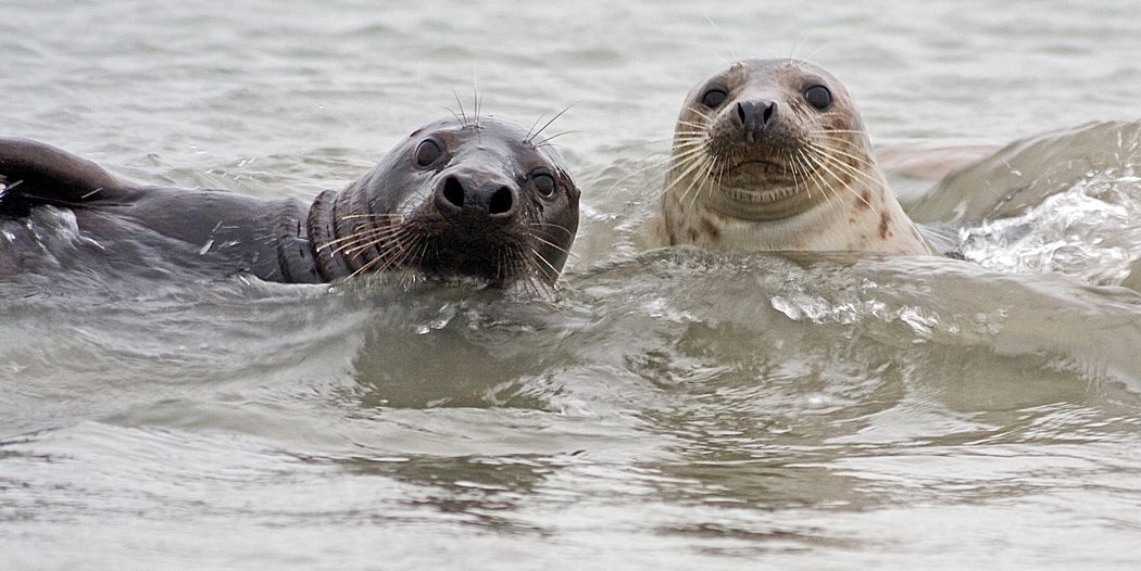 Die Kegelrobben sind neugierig und verspielt, und sie lassen sich von den Fotografen nicht weiter stören ...