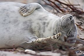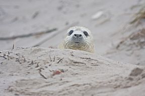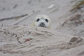Drei Welpen an geschützen Ruheplätzen in den Dünen.