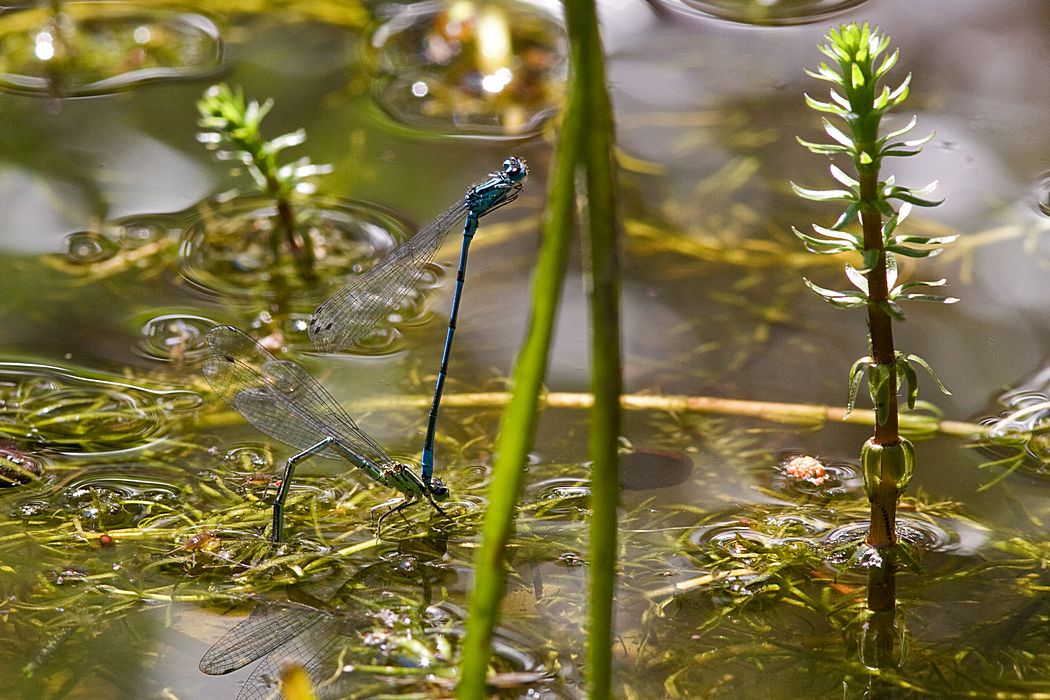 Hufeisen-Azurjungfer, Eiablage im Tandem