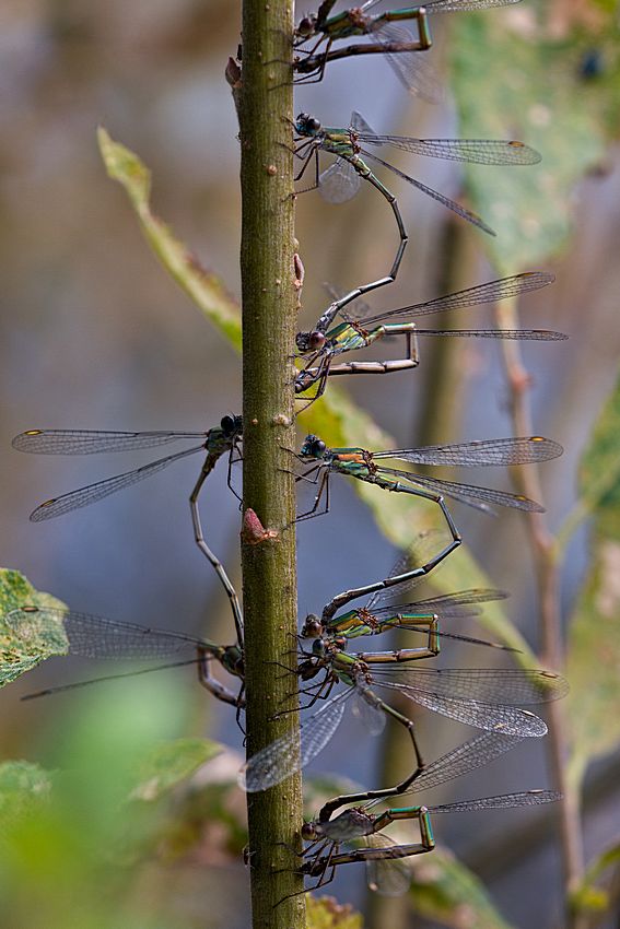 Die Weibchen legen ihre Eier in die Rinde von Ufergehölzen.