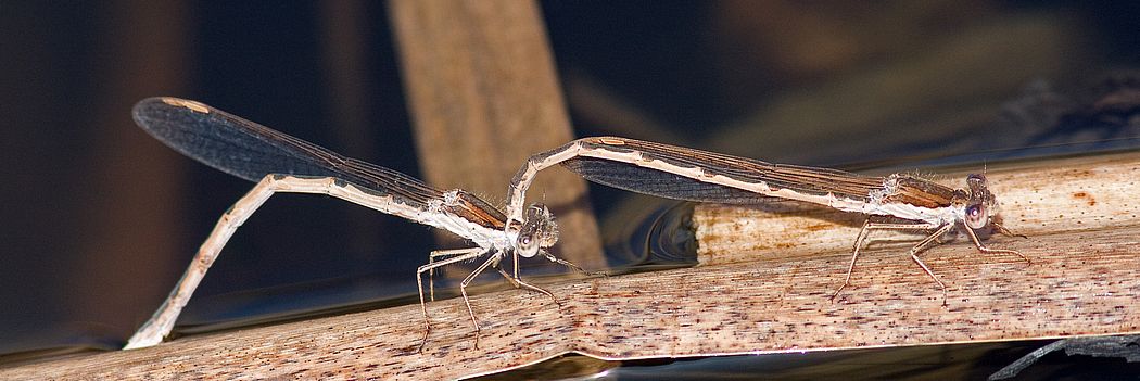 Das Weibchen der Gemeinen Winterlibelle legt seine Eier in der Regel als Tandem - zusammen mit dem Männchen - ab.