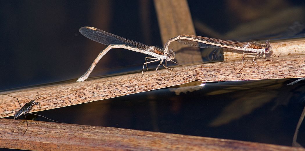 Der Wasserläufer versucht, Libelleneier zu ergattern!