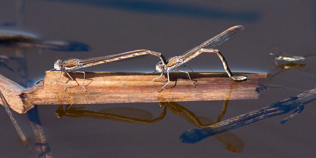 Gemeine Winterlibelle (Sympecma fusca), Eiablage